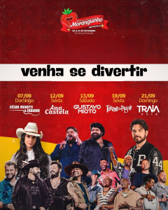 "Celebrando sua 21ª edição, a Festa Nacional do Moranguinho é um dos eventos mais aguardados do ano em nossa cidade! Durante três semanas de setembro, nossa cidade se transforma em um verdadeiro paraíso com a fruta mais amada da estação. A festa nasceu do desejo de valorizar a produção local de morangos, que é uma das principais atividades agrícolas da região."