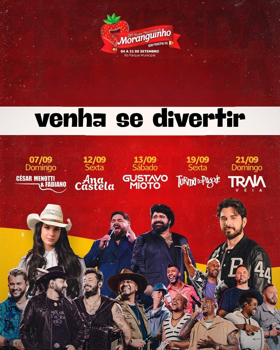 "A Festa Nacional do Moranguinho nasceu como uma celebração à colheita do morango e à força da agricultura familiar de Bom Princípio – RS. Com o tempo, transformou-se em um dos maiores eventos culturais e gastronômicos do Sul do Brasil, reunindo tradições, sabores e histórias da região."
